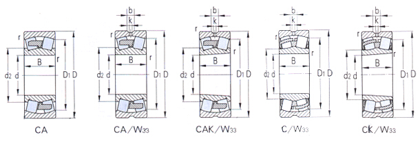 商品詳細介紹: 調心滾子軸承: 外圈是以軸承中心點為球心的球面,具有自動調心性,滾動體與內、外圈滾道之間是線性接觸,能承受大的徑向載荷。適用于礦山、冶金、造紙、建筑等大型機械設備。 |